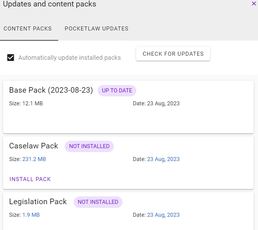 Pocket Law est une copie hors ligne de la jurisprudence, de la législation et d'autres documents juridiques