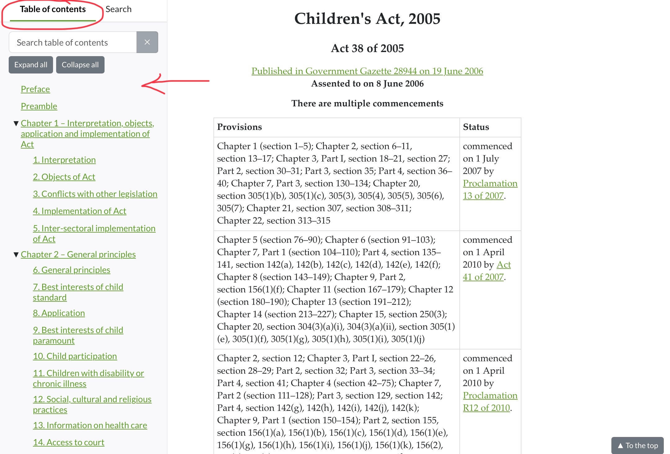 Vous pouvez explorer efficacement le contenu de la législation en utilisant la table des matières du document pour passer d'une section à l'autre.