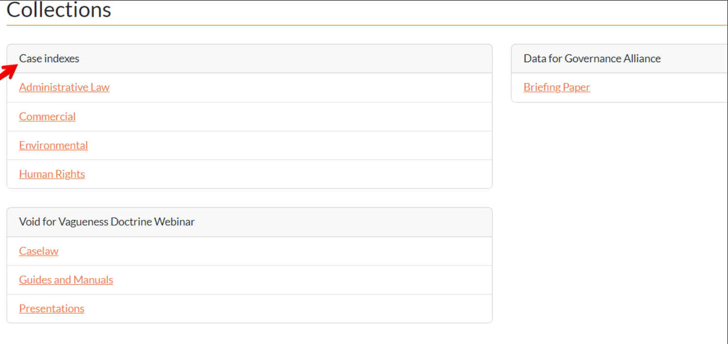 2. To view **case indexes**, scroll to the bottom of the homepage under **collections**