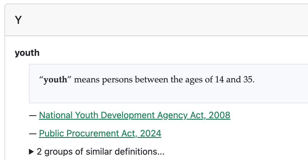 Click **X groups of similar definitions...** to expand it and see all legislation that defines the term, and all the different definitions.