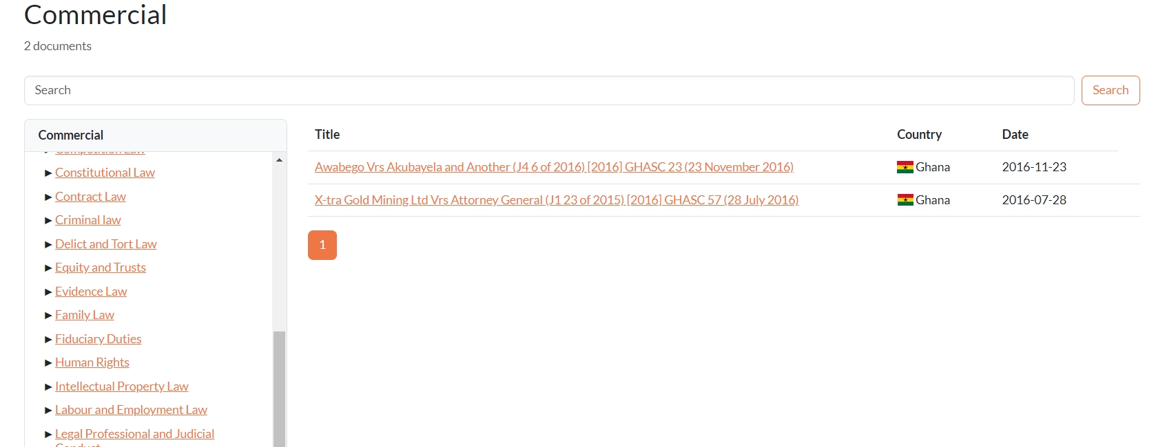 La recherche de" commercial law "dossiers par exemple renvoie à plus de 206 documents étiquetés droit commercial provenant de différentes juridictions.