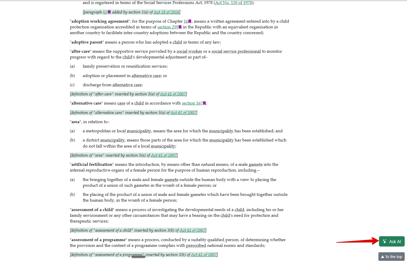 The Ask AI tool helps you quickly understand any part of a legal document